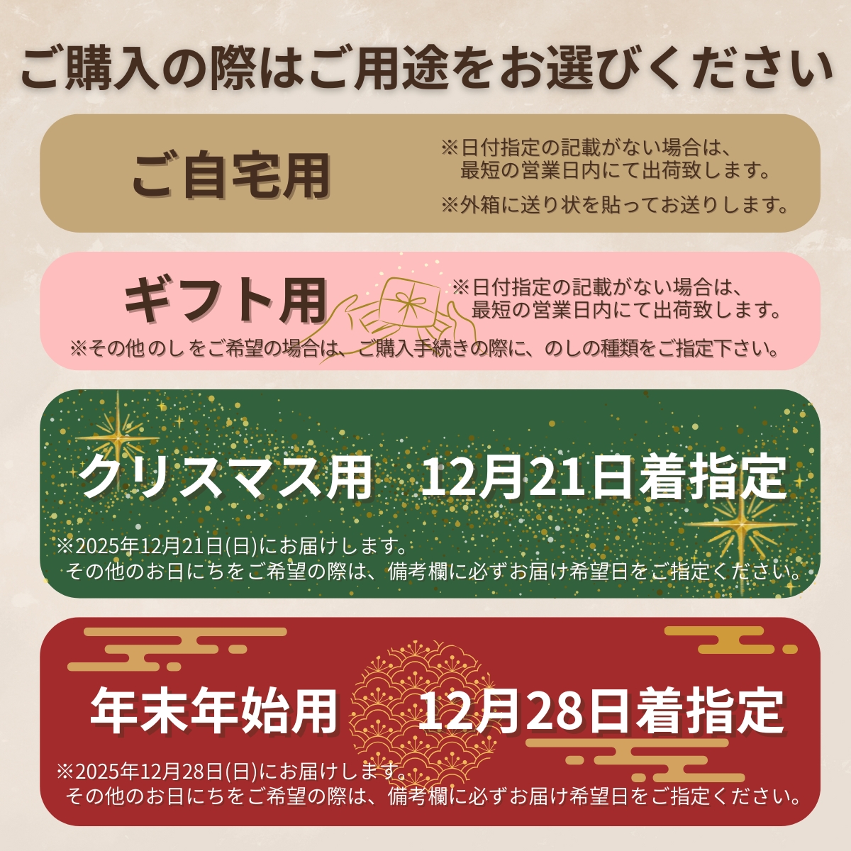 ※その他のお日にちをご希望の際は、お問い合わせ欄に必ずお届け希望日をご指定ください。