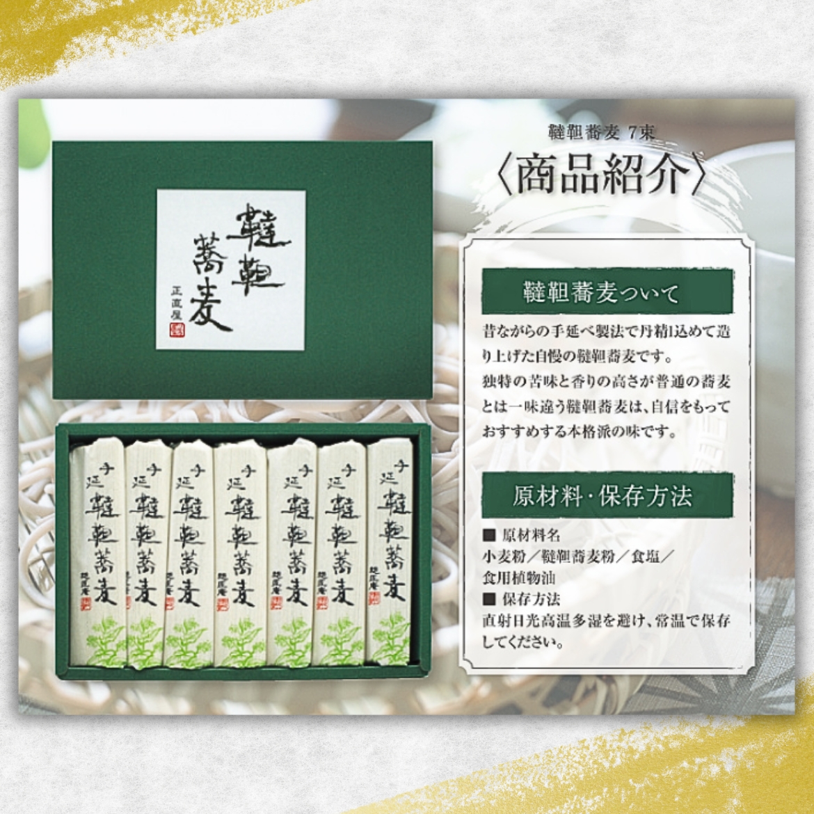 昔ながらの手延べ製法で丹精込めて造り上げた正直屋自慢の韃靼蕎麦です。